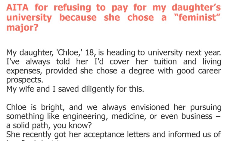 "AITA for refusing to pay for my daughter’s university because she chose a “feminist” major?"