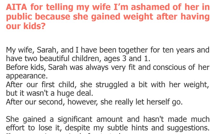 AITA for telling my wife I’m ashamed of her in public because she gained weight after having our kids?