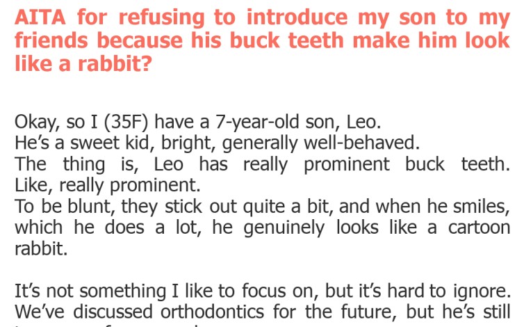 "AITA for refusing to introduce my son to my friends because his buck teeth make him look like a rabbit?"