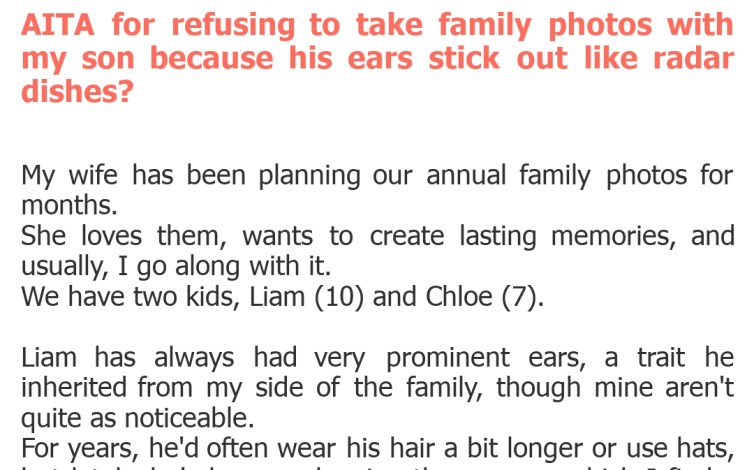 "AITA for refusing to take family photos with my son because his ears stick out like radar dishes?"