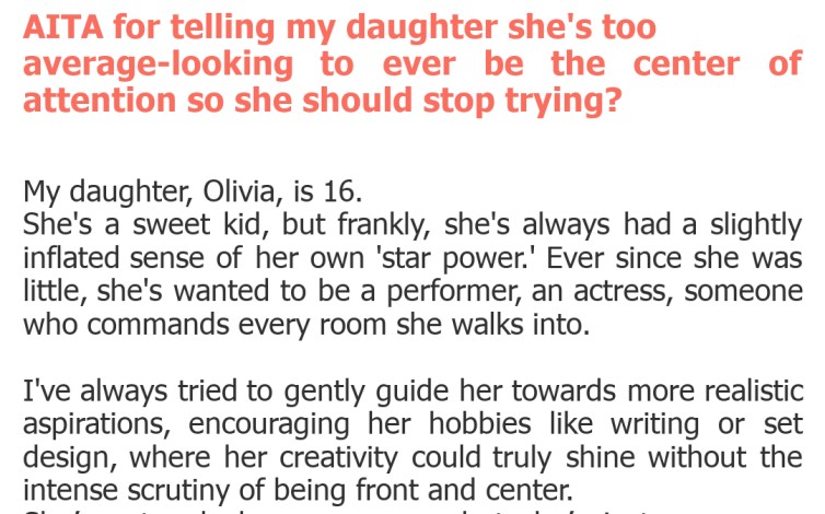 AITA for telling my daughter she’s too average-looking to ever be the center of attention so she should stop trying?