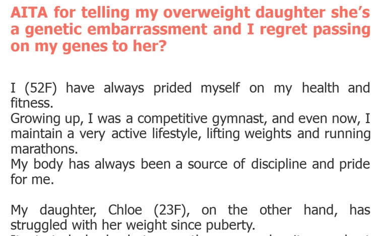 AITA for telling my overweight daughter she’s a genetic embarrassment and I regret passing on my genes to her?