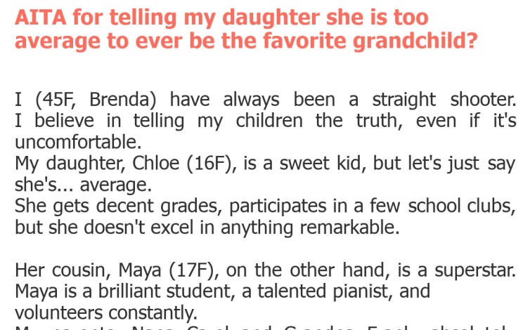 "AITA for telling my daughter she is too average to ever be the favorite grandchild?"