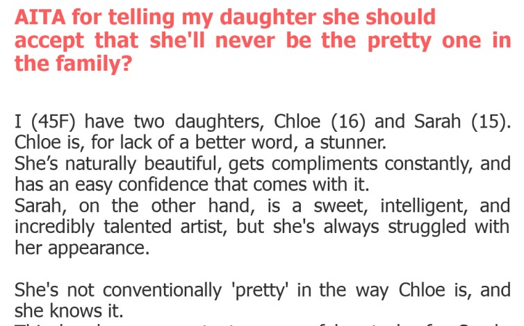 "AITA for telling my daughter she should accept that she'll never be the pretty one in the family?"
