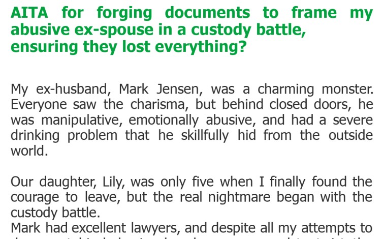 AITA for forging documents to frame my abusive ex-spouse in a custody battle, ensuring they lost everything?