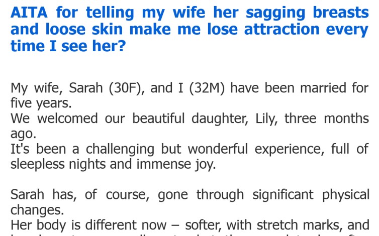 "AITA for telling my wife her sagging breasts and loose skin make me lose attraction every time I see her?"