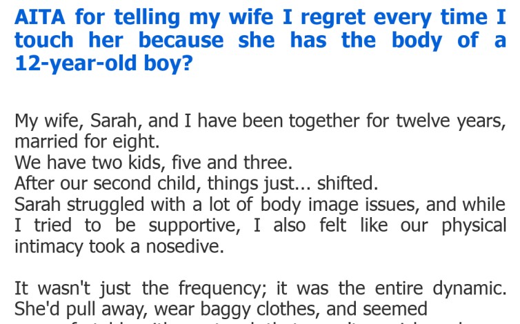 AITA for telling my wife I regret every time I touch her because she has the body of a 12-year-old boy?