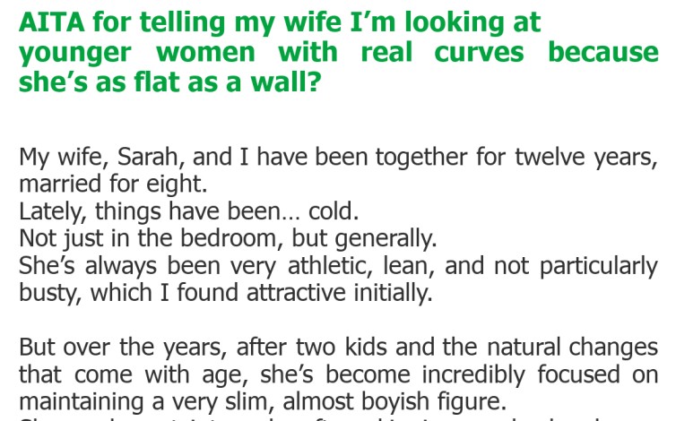 "AITA for telling my wife I’m looking at younger women with real curves because she’s as flat as a wall?"