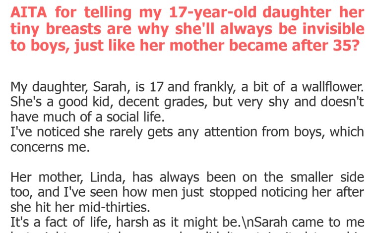 AITA for telling my 17-year-old daughter her tiny breasts are why she’ll always be invisible to boys, just like her mother became after 35?