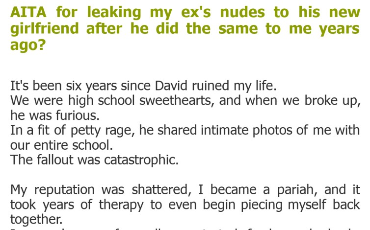 "AITA for leaking my ex's nudes to his new girlfriend after he did the same to me years ago?"