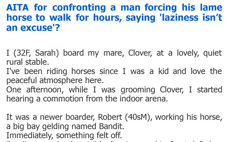 AITA for confronting a man forcing his lame horse to walk for hours, saying ‘laziness isn’t an excuse’?