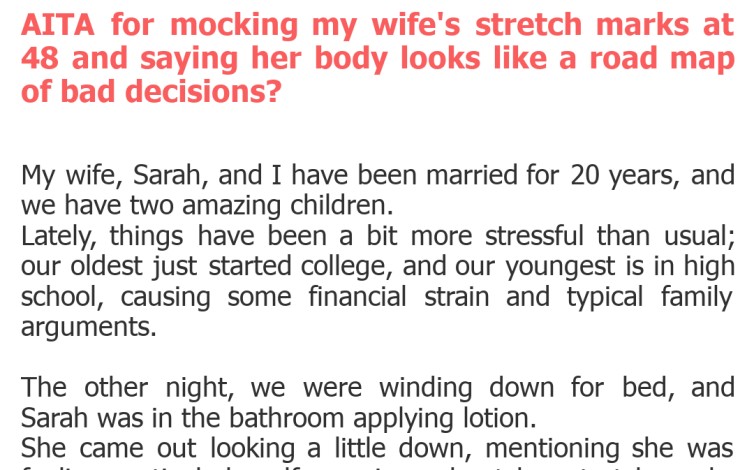 AITA for mocking my wife’s stretch marks at 48 and saying her body looks like a road map of bad decisions?