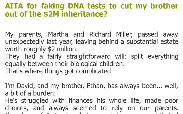 "AITA for faking DNA tests to cut my brother out of the $2M inheritance?"