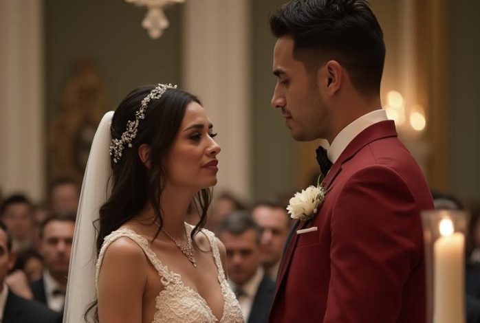 The murmur swelled into a tidal wave. They weren’t just whispering anymore; they were feasting. My legs trembled under the weight of the gown—yards of silk that now felt like a shroud. The bouquet of white roses, heavy and mocking, slipped from my numb fingers and hit the floor with a wet thud.