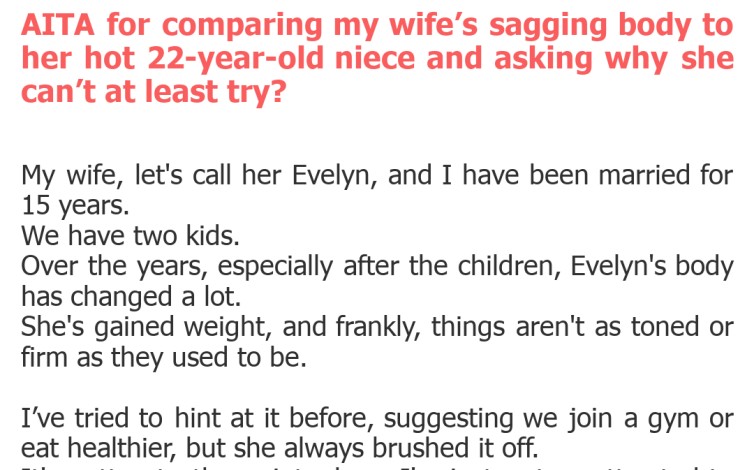 "AITA for comparing my wife’s sagging body to her hot 22-year-old niece and asking why she can’t at least try?"