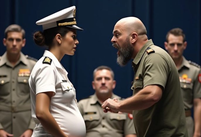 The parade hall was a cavern of polished linoleum and sharp, fluorescent glare. The air smelled of floor wax and the heavy starch of two hundred utility uniforms. I stood at attention, my spine a rigid line of steel, despite the shifting weight of the life beneath my ribs. My maternity uniform had been tailored with surgical precision, the fabric pulled taut over the curve of my stomach. Inside, Noah moved gently, a rhythmic fluttering that felt like a secret code between us.