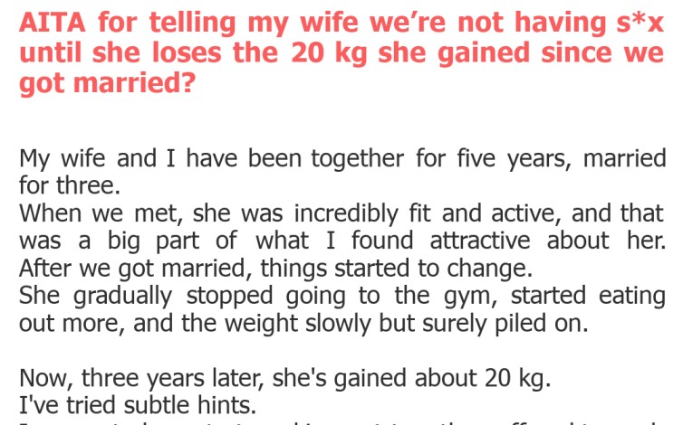 "AITA for telling my wife we’re not having s*x until she loses the 20 kg she gained since we got married?"