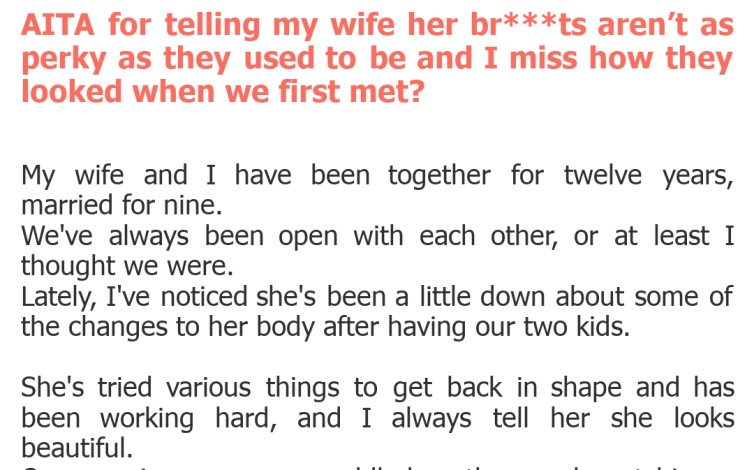 "AITA for telling my wife her br***ts aren’t as perky as they used to be and I miss how they looked when we first met?"