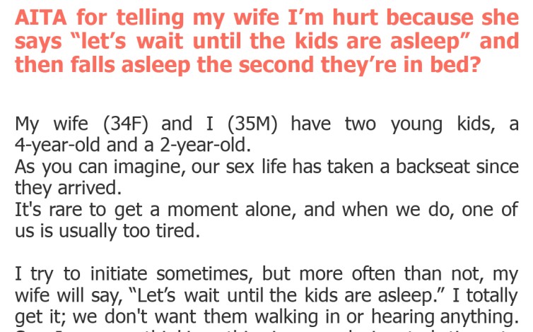 "AITA for telling my wife I’m hurt because she says “let’s wait until the kids are asleep” and then falls asleep the second they’re in bed?"